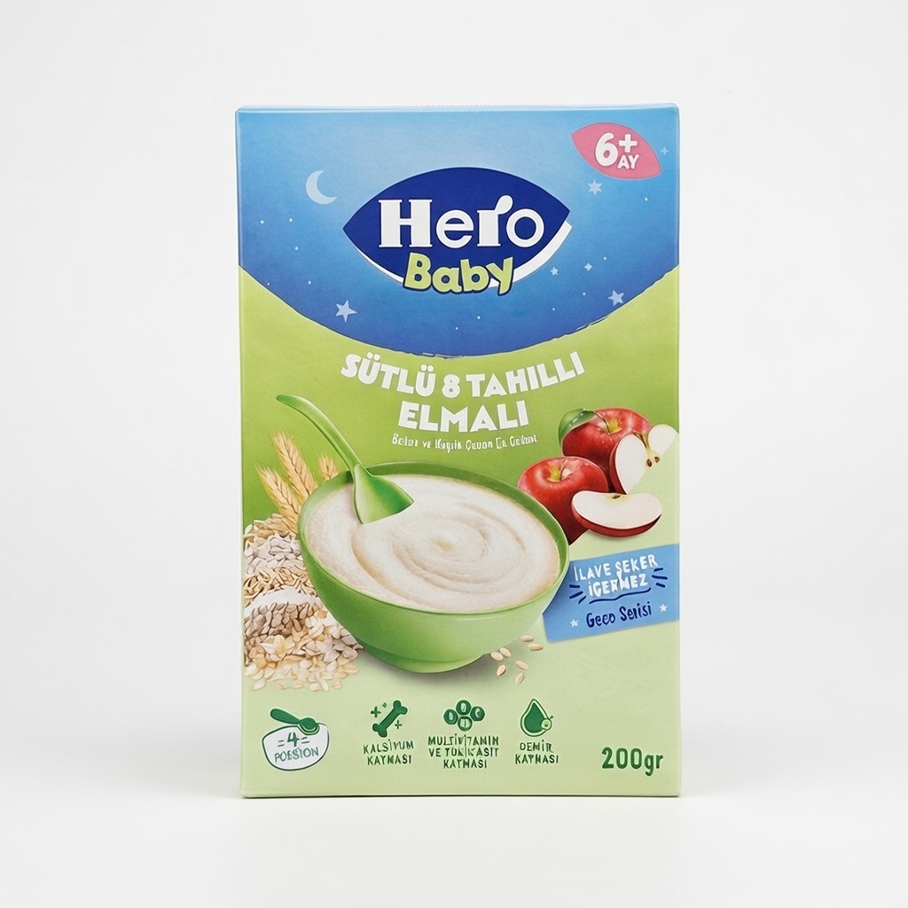 غذای کمکی هرو 8 غله با سیب،مناسب شب، محصول Hero Baby ترکیه با فرمولاسیون ارگانیک سال 2026، مناسب نوزادان از 8 ماهگی است و با ترکیب 8 غله کامل مانند جو دوسر، گندم و ذرت به همراه سیب طبیعی، انرژی پایدار و طعم ملایم میوه ارائه میدهد. این فرنی هرو با ویتامین C و E غنیشده، سیستم ایمنی را تقویت میکند و بدون گلوتن و شکر افزوده، فقط شیرینی طبیعی سیب دارد. وزن 200 گرمی آن برای حدود 12 وعده کافی است و با بافت خامهای، هضم راحت را تضمین مینماید. اگر به دنبال خرید غذای کمکی هرو 8 غله با سیب با استانداردهای بالا هستید، این محصول برای تغذیه کمکی پیشرفته ایدهآل است.