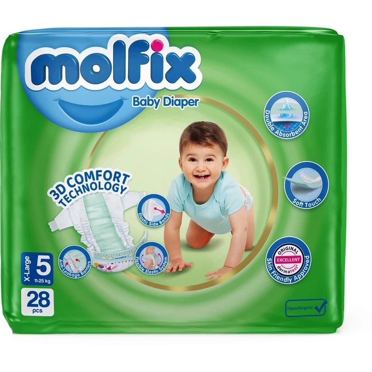 ویژگیهای کلیدی پوشک مولفیکس سایز 5 شامل نوارهای کناری کشسان پهن و سیستم ۵D الاستیک است که آزادی حرکت را برای کودکان فعال فراهم کرده و از ایجاد خط روی پوست جلوگیری مینماید. لایه تنفسی Air-Soft آن اجازه گردش هوا را داده و خطر عرقسوز شدن را کاهش میدهد. تحقیقات اخیر نشان میدهد که این پوشک با جذب سریع و یکنواخت، بوی نامطبوع را به حداقل رسانده و با طراحی ضدحساسیت، رضایت بالای والدین را در سال ۲۰۲۵ کسب کرده است. علاوه بر این، روکش نرم پنبهای آن احساس راحتی طبیعی ایجاد میکند.